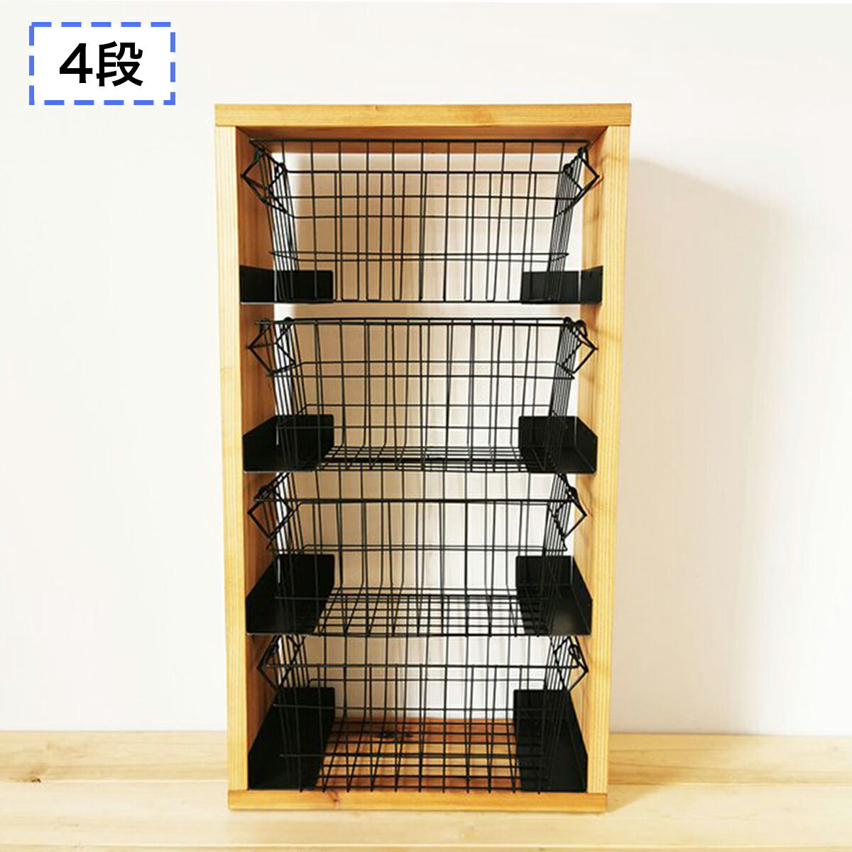 - 【ふるさと納税】無垢材ワイヤーバスケットシェルフ『落下防止付/BIGカゴ付』[3段/4段]|ラック カゴ かご バスケットラック バスケット棚 バスケット収納 棚 収納 ラック 天然木 ナチュラル リビング 玄関 子供部屋 洗面所 脱衣所 [0950r][0961r]