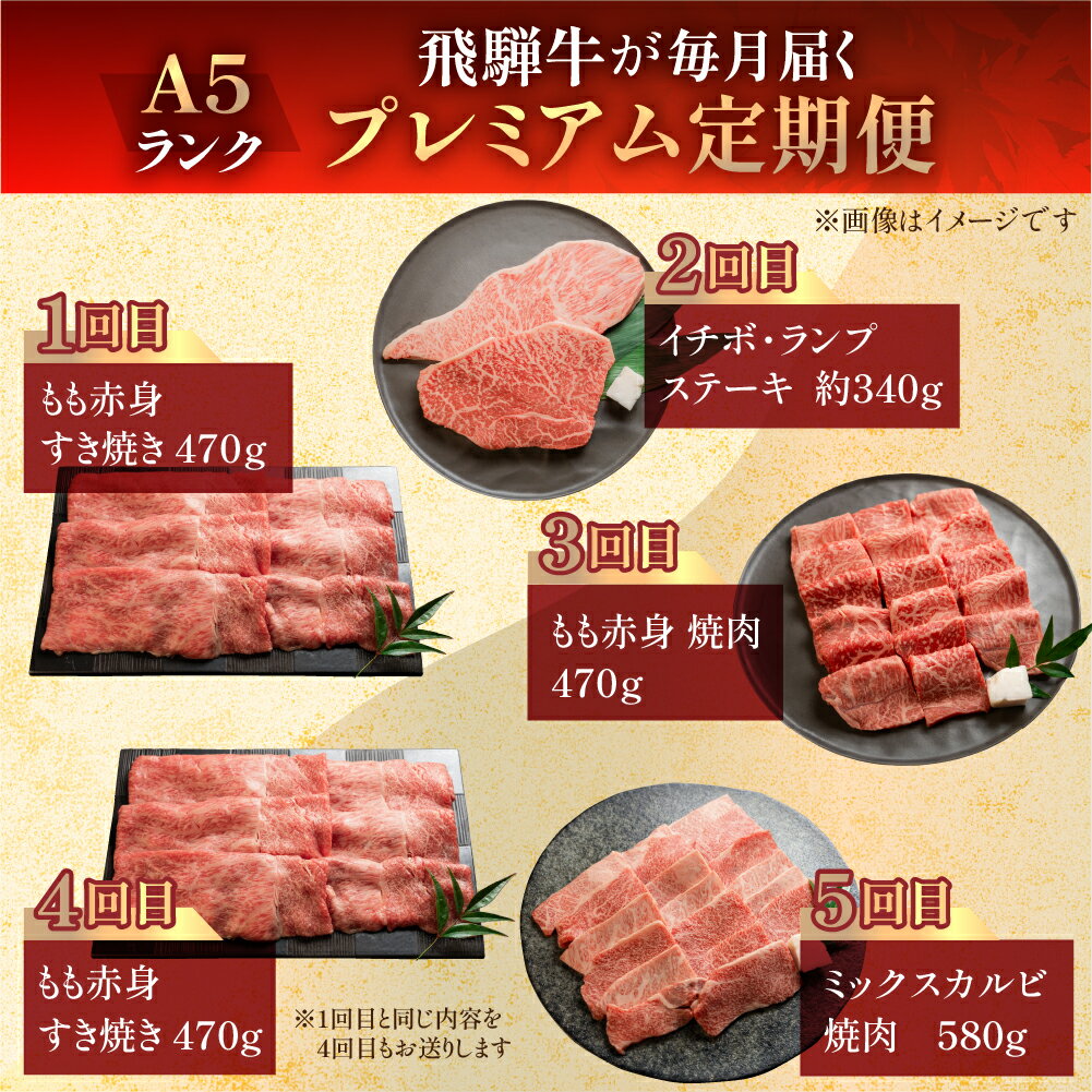 - 【ふるさと納税】 A5 飛騨牛 天狗 定期便 5回 牛肉 (ステーキ / すき焼き / 焼肉 / モモ/バラ/イチボ ランプ /カルビ ) お楽しみ 肉 定期便 下呂温泉 おすすめ 赤身 霜降り 希少部位 もも 肩ロース 食べ比べ 高級牛肉 焼き肉 しゃぶしゃぶ 100,000円 10万円