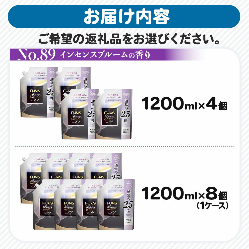 【ふるさと納税】第一石鹸 FUNSラグジュアリー柔軟剤 詰替用 1200ml【選べる種類:インセンスブルームの香り /ホワイトローズムスクの香り+選べる詰替個数:4個/8個(1ケース)