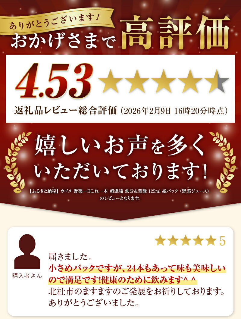 - 【ふるさと納税】 カゴメ 野菜一日これ一本 超濃縮 鉄分&葉酸 125ml 紙パック 選べる本数 24本 48本 72本 野菜ジュース 濃縮ジュース 名水仕込 KAGOME これ1本 無添加 野菜不足 350g 30品目 健康志向 飲料 仕送り ギフト 防災 送料無料