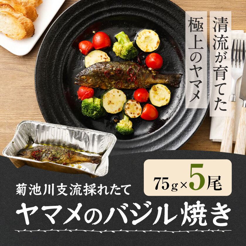 【ふるさと納税】菊池川支流採れたて ヤマメのバジル焼き 75g×5尾 有限会社味万《30日以内に出荷予定(土日祝除く)》熊本県 菊池市 ヤマメ 山女魚 魚 バジル焼き キャンプ BBQ バーベキュー 温めるだけ 個包装 九州産 国産 冷凍 送料無料