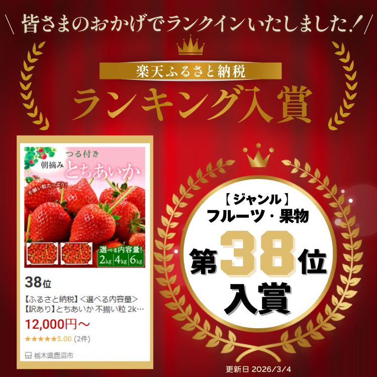 - 【ふるさと納税】<選べる内容量>【訳あり】とちあいか 不揃い粒 2kg 4kg 6kg(家庭用、ジャム・冷凍など加工用にもおすすめ)| 果物 いちご 朝取り 新鮮 ハート フルーツ デザート ストロベリー デザート スイーツ 苺 イチゴ※2026年5月中旬~5月下旬頃に順次発送予定