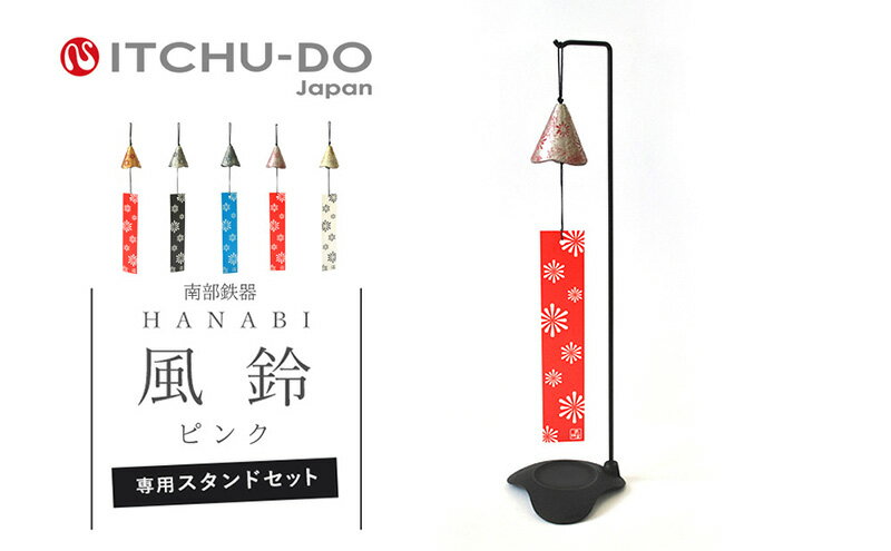 【ふるさと納税】南部鉄器 風鈴・スタンドセット HANABI(銀ピンク) 雑貨 日用品 インテリア 工芸品 装飾品