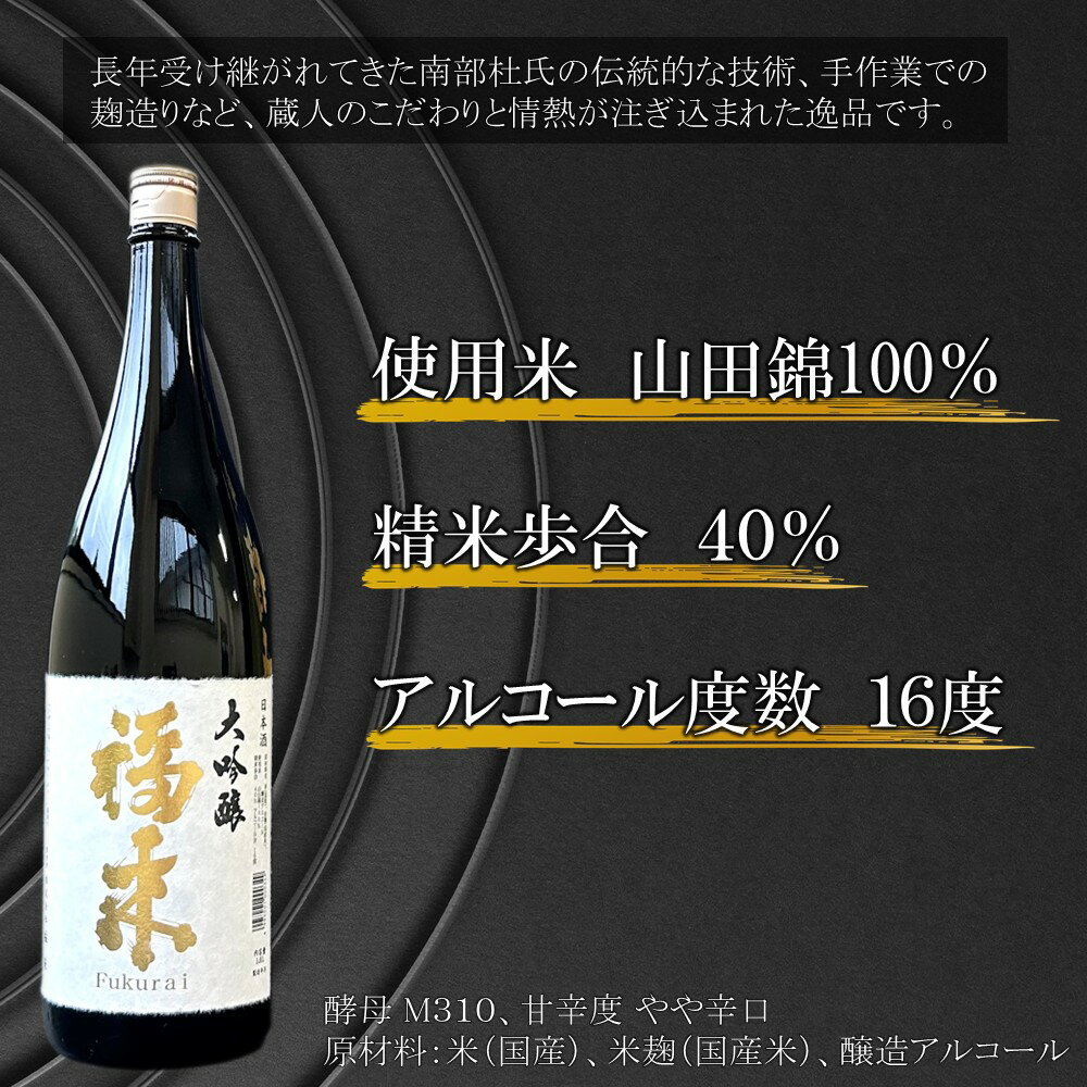 - 【ふるさと納税】\最短5営業日以内発送/【蔵元直送】「大吟醸 福来 1.8L」(日本酒 酒 さけ sake アルコール お祝い 縁起 兵庫県産 米 山田錦 精米歩合 40% 16度 酵母 M310 人気 おすすめ お取り寄せ 贈答 ご自宅用 プレゼント 送料無料)