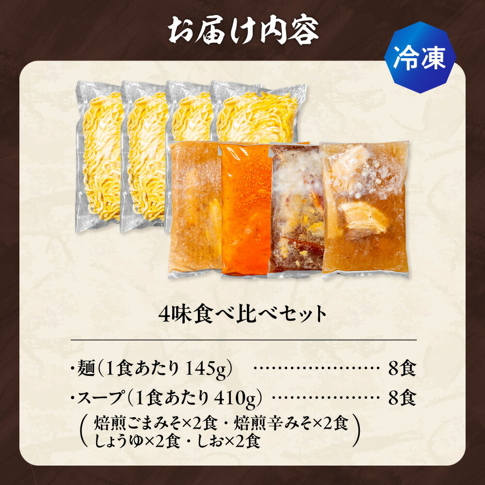 - 【ふるさと納税】 札幌 吉山商店 ラーメン 4種 各2食 計8食 セット 焙煎ごまみそ 焙煎辛みそ しょうゆ しお 味噌 醤油 塩 らーめん 生麺 スープ 具材 拉麺 食べ比べ 詰め合わせ お取り寄せ ご当地 グルメ ギフト 贈答 冷凍 個包装 小分け サッポロ 北海道 札幌市