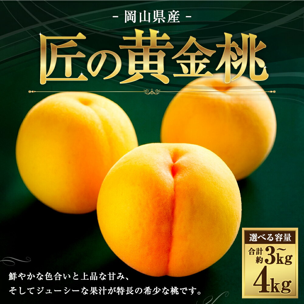 【ふるさと納税】岡山県産 黄色い桃 匠の黄金桃 約3kg箱(6~9玉) / 約4kg箱(10~15玉)<選べる内容量> 黄金桃 桃 もも モモ フルーツ くだもの 果物 果実 デザート 冷蔵 国産 岡山県 倉敷市 送料無料 【2026年8月下旬~9月下旬発送予定】