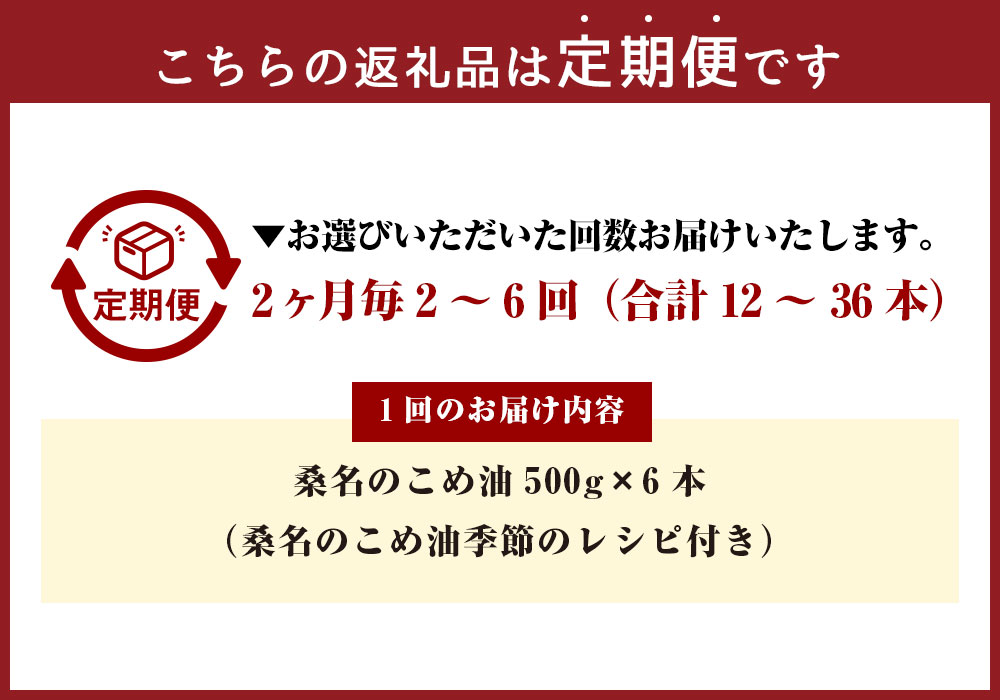 - 【ふるさと納税】<選べる定期便>油清 桑名のこめ油 1回あたり計3kg(500g×6本入り) 桑名のこめ油季節のレシピ付き 2ヶ月毎 2回 / 3回 / 4回 / 5回 / 6回 米油 油 あぶら 米ぬか ビタミンE 食用油 調味料 揚げ物 炒め物 保健機能食品 健康 国産 三重県 桑名市 送料無料