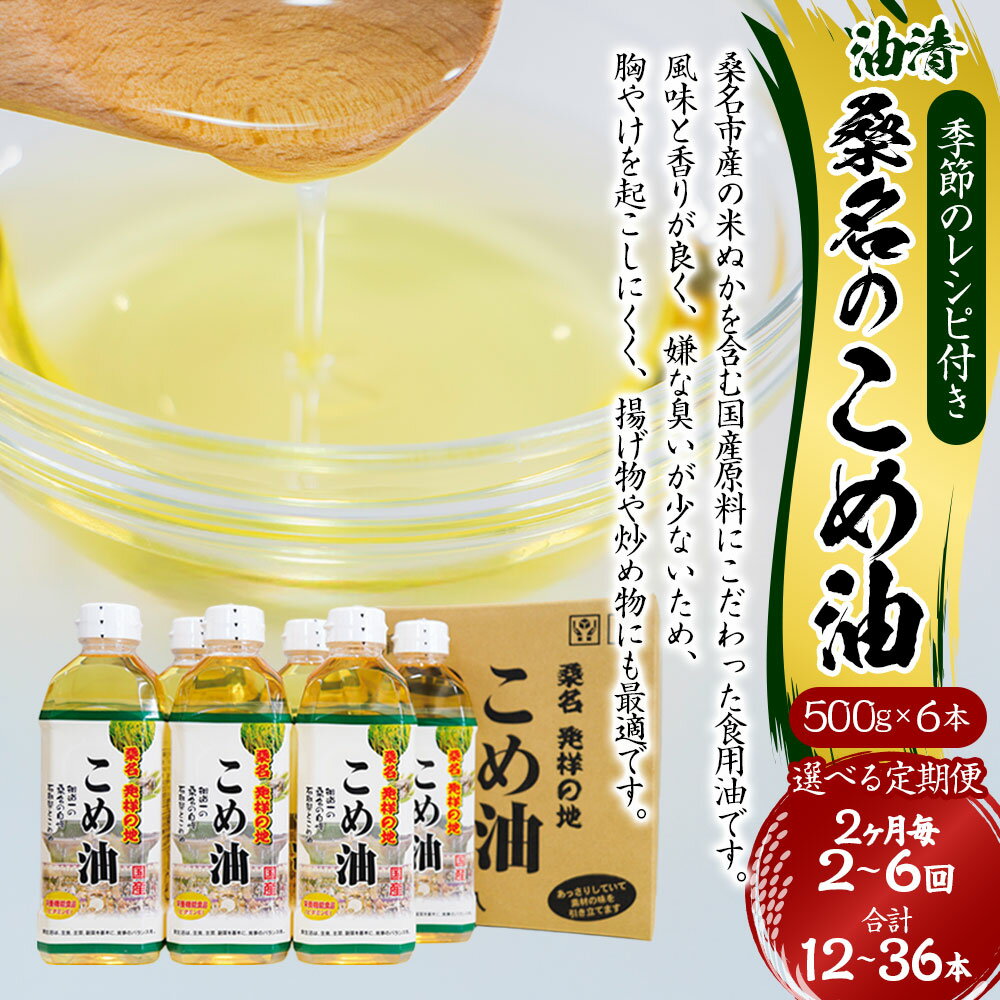 【ふるさと納税】<選べる定期便>油清 桑名のこめ油 1回あたり計3kg(500g×6本入り) 桑名のこめ油季節のレシピ付き 2ヶ月毎 2回 / 3回 / 4回 / 5回 / 6回 米油 油 あぶら 米ぬか ビタミンE 食用油 調味料 揚げ物 炒め物 保健機能食品 健康 国産 三重県 桑名市 送料無料