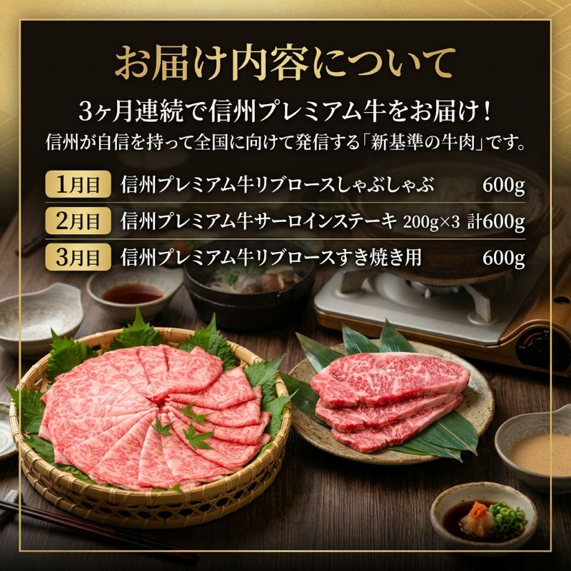 - 【ふるさと納税】【定期便3回】 信州プレミアム牛定期便 合計1.8 kg|ふるさと納税 長野県 松本市 信州プレミアム牛 牛肉 リブロース サーロイン すき焼き 焼肉 ステーキ 定期便