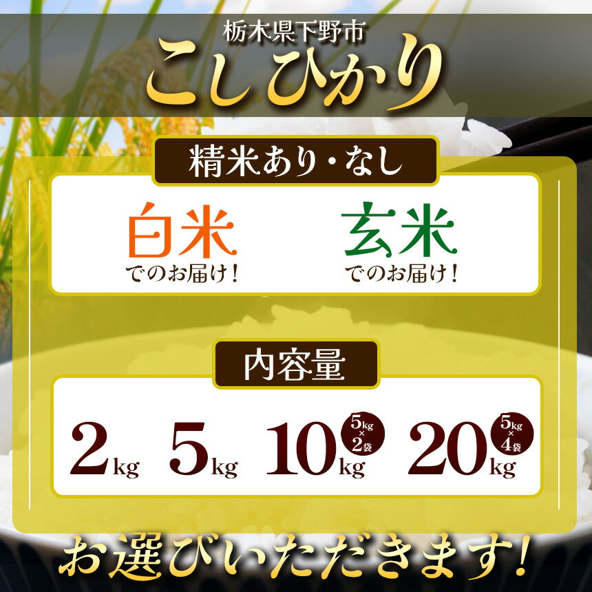 【ふるさと納税】【先行予約】【2026年10月以降発送】米 お米 下野市産 コシヒカリ 新米 2~20kg 選べる内容量 玄米 白米 | こめ コメ 白米 精米 こしひかり コシヒカリ 新米 栃木米 令和8年度米 令和8年 2026年度 ブランド米 栃木県 特産品 送料無料 栃木県 下野市