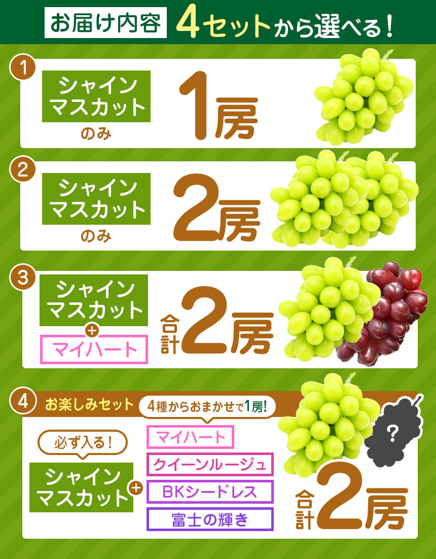 - 【ふるさと納税】【2026年 先行予約】 選べる!有機肥料栽培 シャインマスカット(単品 or セット)10月上旬頃発送開始 | 果物 くだもの フルーツ 葡萄 ぶどう シャインマスカット 希少 マイハート BKシードレス 富士の輝き 我が道 クイーンルージュ® 長野県 塩尻市