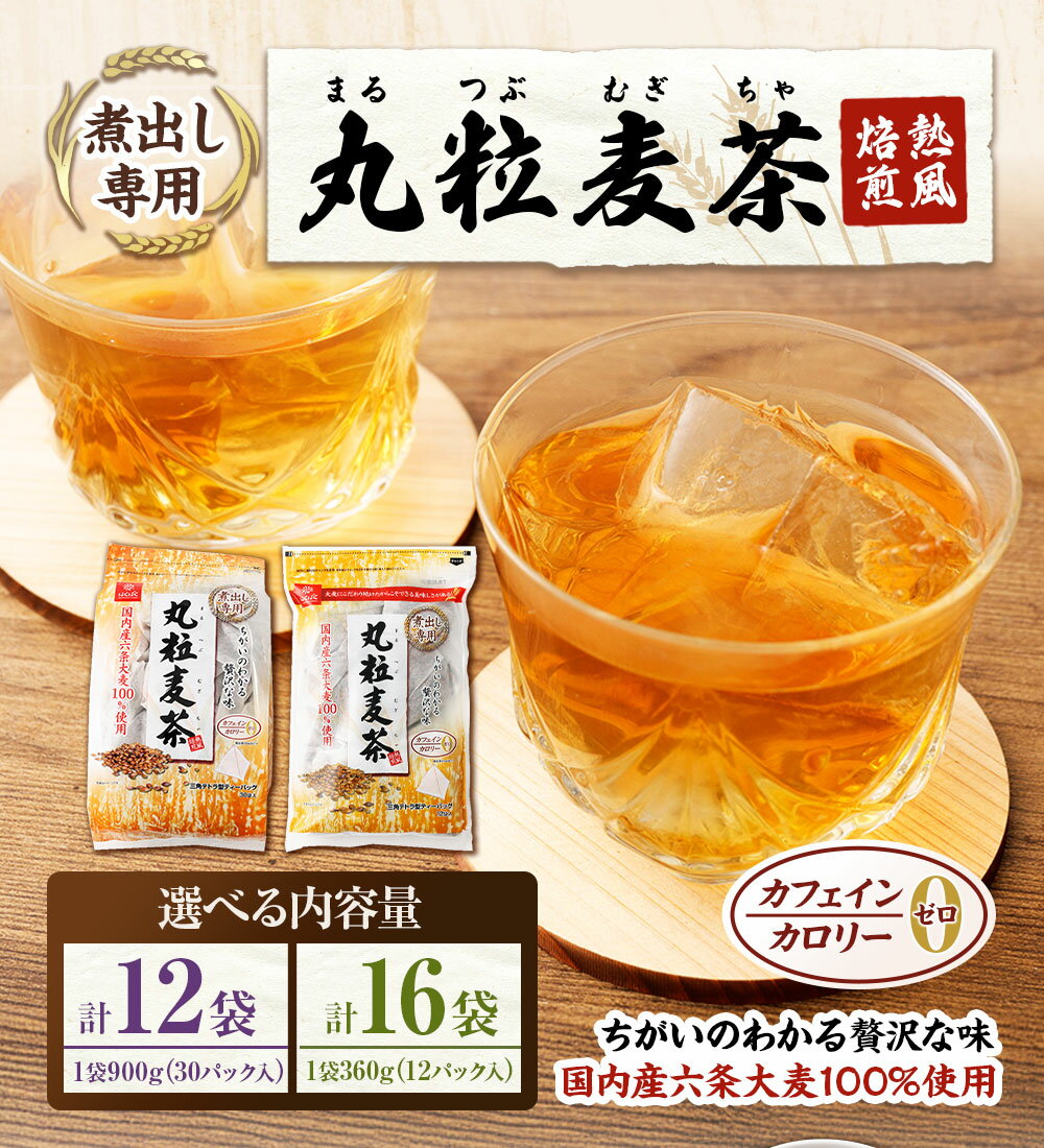 - 【ふるさと納税】<選べる内容量>丸粒麦茶 計10.8kg(900g(30袋)×12袋) / 計5.76kg(360g(12袋)×16袋) 麦茶 むぎ茶 お茶 六条大麦 三角テトラ型パック 飲料 国産 山梨県 中央市 送料無料