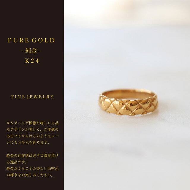 - 【ふるさと納税】< 甲府ジュエリー > リング 指輪 レディース メンズ ジュエリー アクセサリー 純金 K24 キルティング 幅5.8mm 重厚感 ギフト プレゼント 専用ケース付 保証書付 k122-156