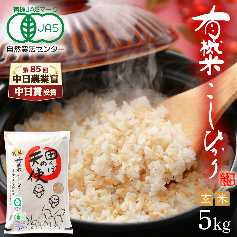 - 【ふるさと納税】 令和7年産 有機JAS 米 越前コシヒカリ 5kg 福井県産【玄米】【有機栽培 JAS認証 人気品種 こしひかり 5キロ】 [e10-b006]
