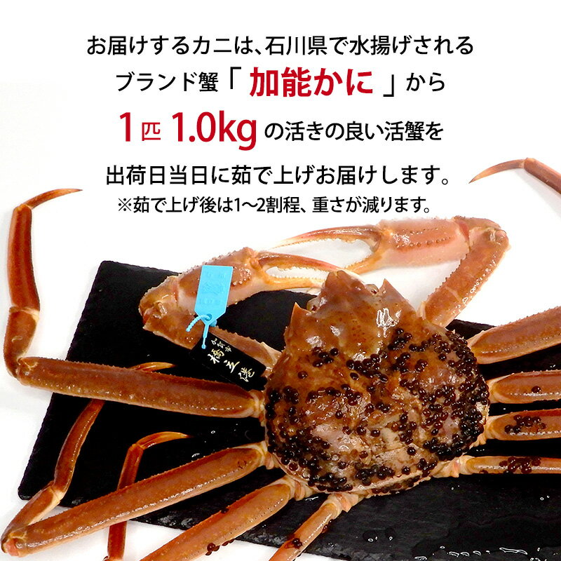 【ふるさと納税】\時期が選べる/【冷蔵発送】石川県産 加能かに ズワイガニ ( 産地証明タグ付 ) 茹で上げ前重量 約1.0kg 1匹 特大サイズ ブランド蟹 ボイル 茹で 蟹 かに グルメ 海産物 海の幸 復興 震災 コロナ 能登半島地震復興支援 北陸新幹線 F6P-0679