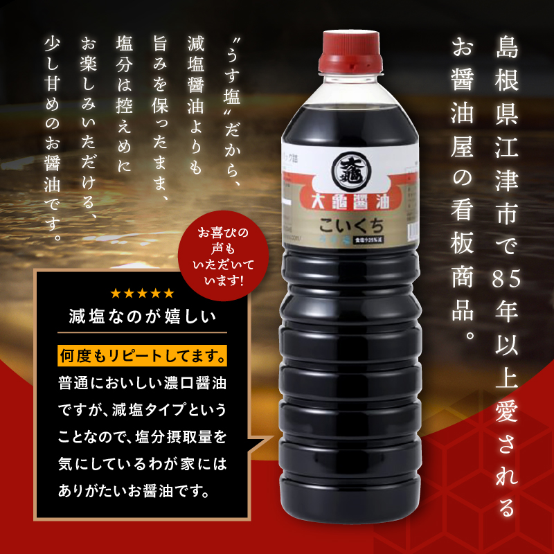 大亀醤油 濃口うす塩 1L×6本セット【YS-1】|送料無料 大亀醤油 国産 醤油 しょうゆ しょう油 うす塩タイプ 甘口 旨味 濃口 減塩 減塩25% うす塩 調味料 加工品 料理 調理 食べ物 食品 常温 常温保存 保存 卵かけご飯 色々な料理に ギフト プレゼント|