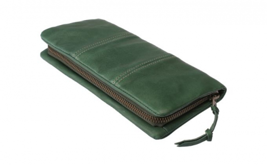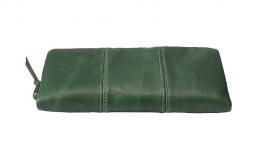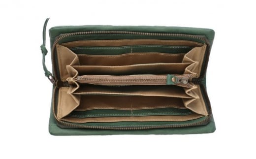 - 豊岡財布 牛革ラウンドファスナー長財布 ライトグリーン