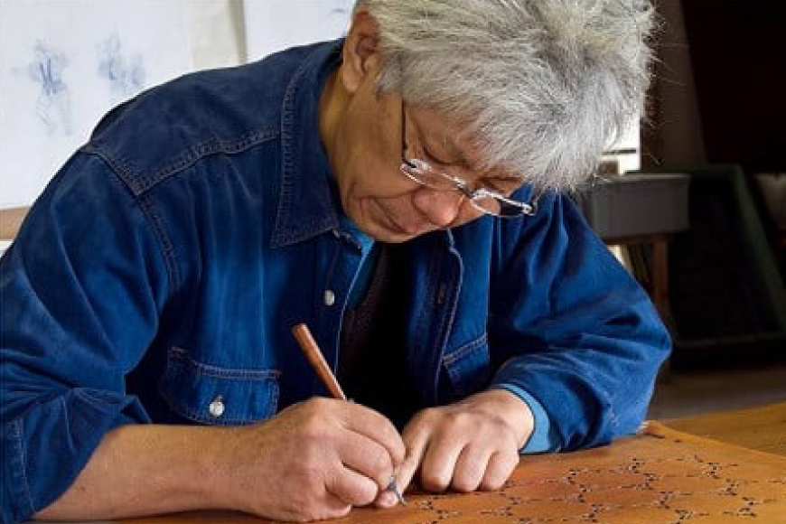 - 【北島町無形指定文化財】「阿波藍長板中形染」創作手彫り型紙【湧(ユウ)】 約48cm×57cm(額縁含む) 1点 [橘惠 徳島県 北島町 29af0009] インテリア オリジナル 藍染 額縁 創作