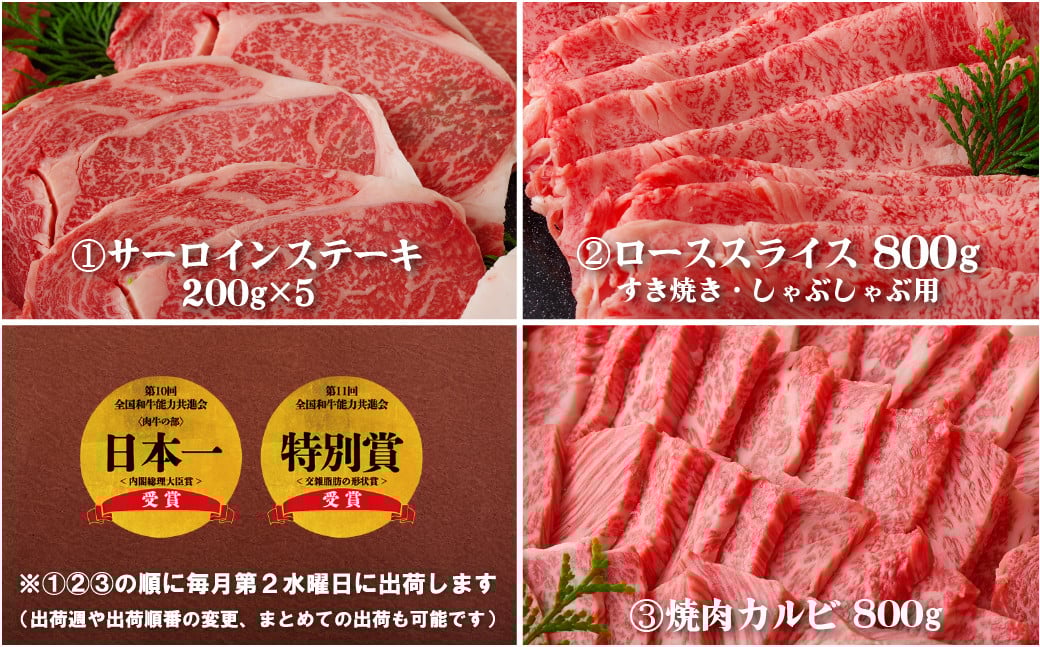 - B112p 《定期便》長崎和牛お楽しみ便【希望週に3回お届け】サーロインステーキ ローススライス カルビ 焼き肉 すき焼き 牛肉 国産 ブランド 和牛 黒毛和牛