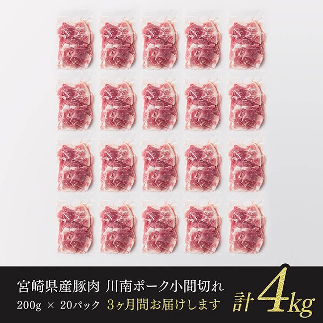 - 【3ヶ月定期便】川南ポーク豚小間切れ4kg(200g×20パック) 【 宮崎県産 川南町産 豚肉 肉 切り落とし 小分け 定期便 送料無料 】