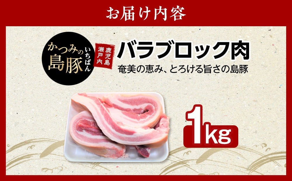 かつみの島豚いちばん豚バラブロック肉 1kg【豚 豚バラ 豚肉 豚バラブロック 豚肉ブロック 肉 人気 おすすめ お取り寄せ 奄美大島 鹿児島県 瀬戸内町 AY007】