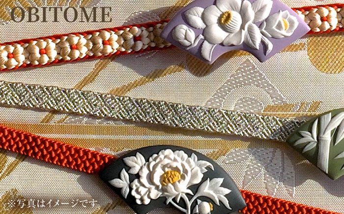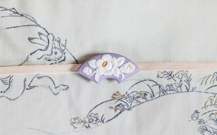 - <帯留> 椿 紫色 /着物 小物 ギフト 贈り物 / 瀬戸市 / 陶華 [BBCD011]