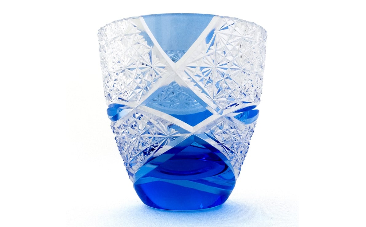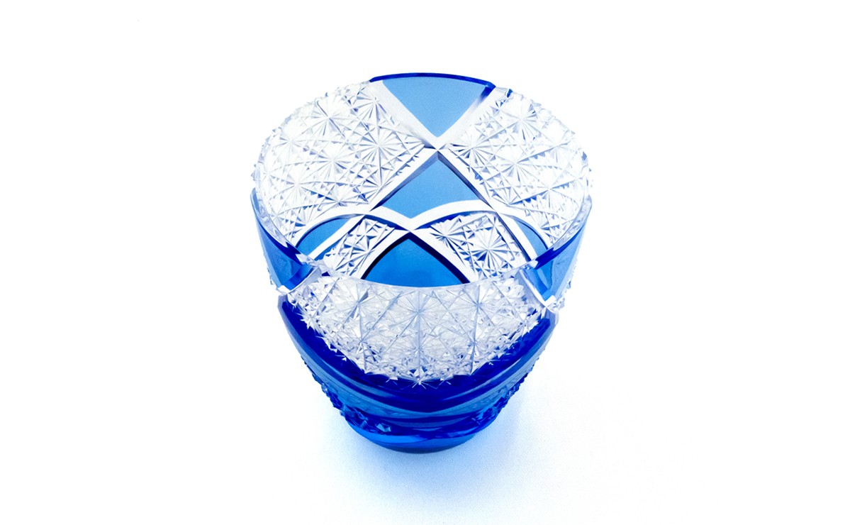 浅草切子 KANA KURITA「ぐい呑み 円 青藍」木箱入り| 切子 花切子 切子ガラス ガラス工芸 グラス ガラス コップ 手作り ぐい呑み 家飲み 酒器 ハンドメイド 手作り ギフト 贈答 プレゼント