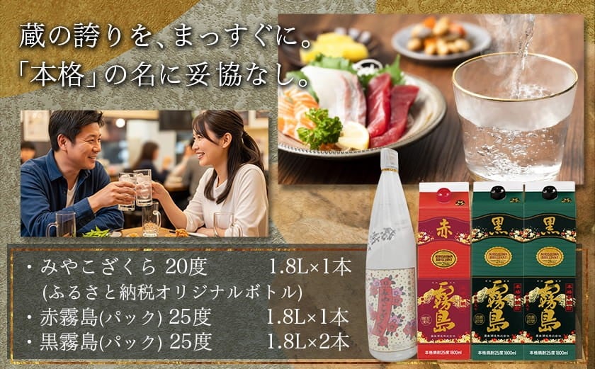 みやこざくらと霧島赤黒パック 1.8L×4本セット ≪みやこんじょ特急便≫_AD-18-001_(都城市) みやこざくら ふるさと納税オリジナルボトル 20度 赤霧島 黒霧島 25度 1.8L