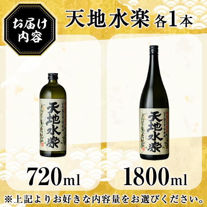 - <量が選べる!>有機栽培の芋・米を使用した芋焼酎 天地水楽(720ml×1本/1800ml×1本) 鹿児島 焼酎 芋焼酎 お酒 贈答 ギフト 天地水楽 常温 常温保存 【さかいだストアー】