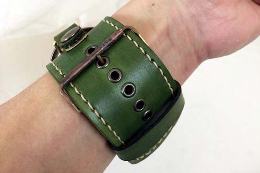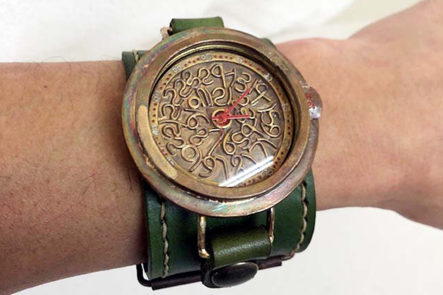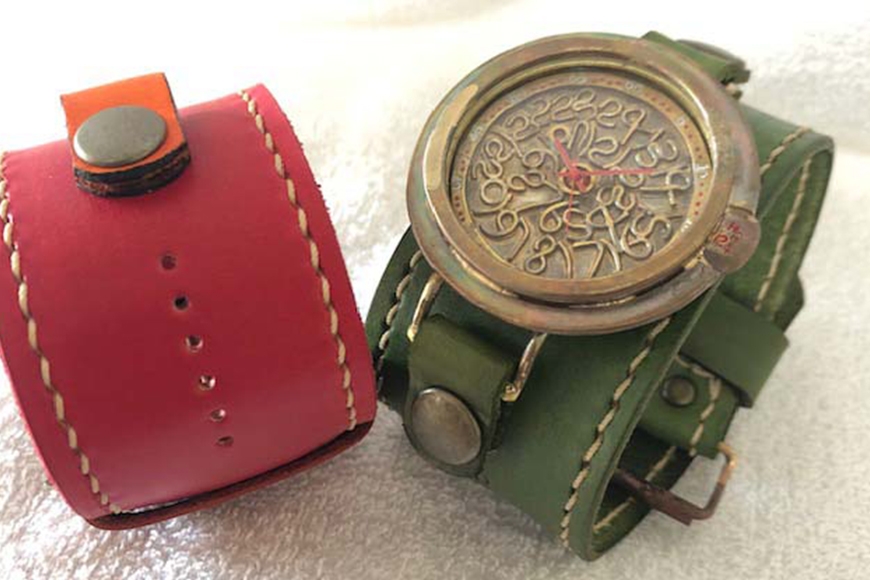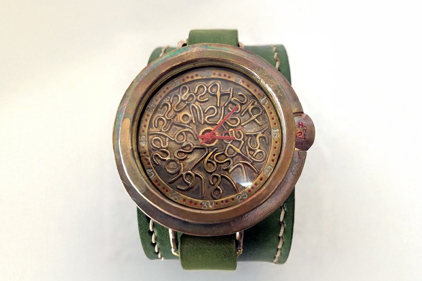 - [№5895-0304]HR24の大型サイズ手作り時計 H(男性用)オリ-ブ