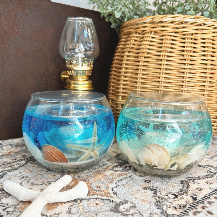 - 三陸の海を詰め込んだキャンドル 「シェルグラスランタン」 カラーが選べる (ブルー/ブルーグリーン)【 貝殻 ヒトデ 海中 グラス 三陸 海 キャンドル chai candle 】 RT2941