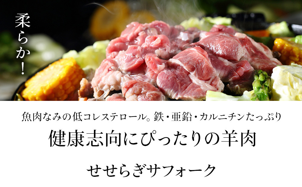 【予約】せせらぎサフォーク(国産ホゲット)サフォーク3種 食べ比べ セット(ヒレ・バラ・内もも各150g) ジンギスカンのタレ付き <計良商事>