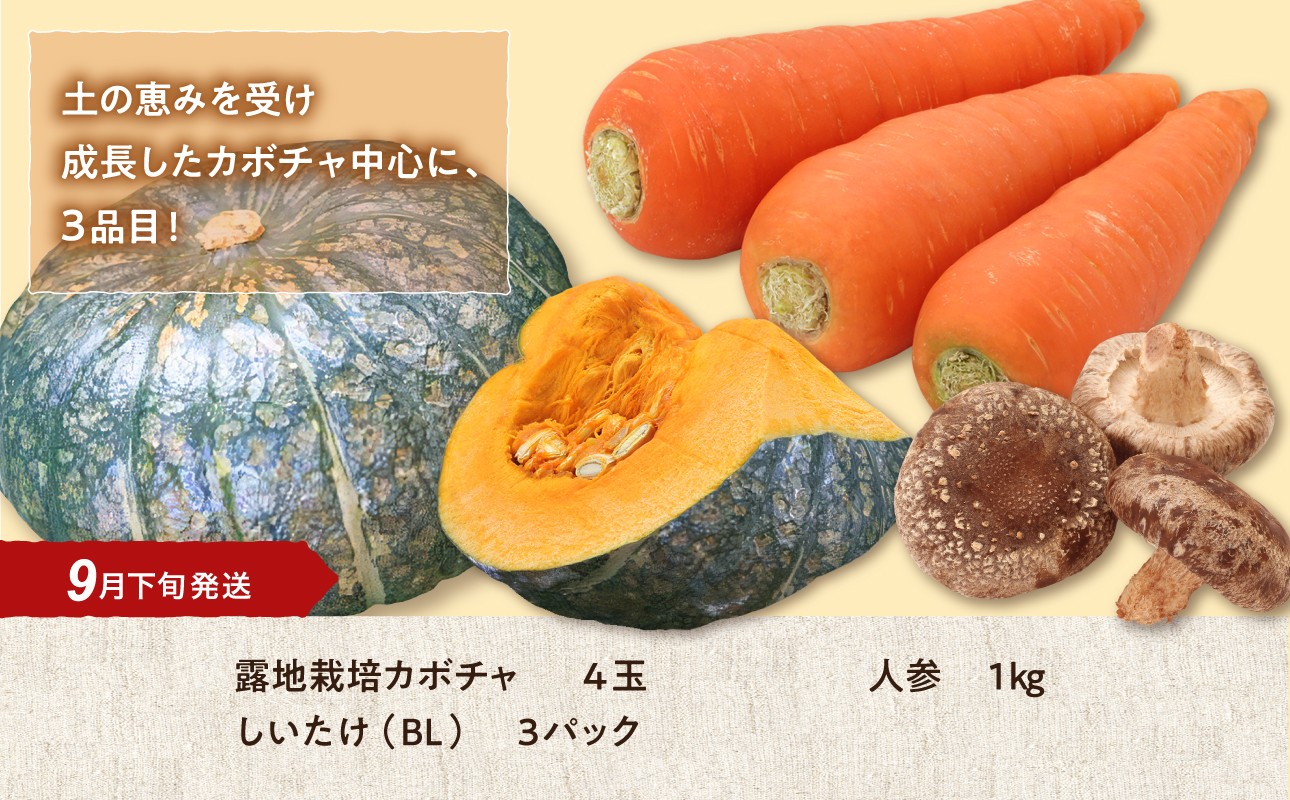 - 【9月下旬発送】旬の採れたて野菜「カボチャセット」