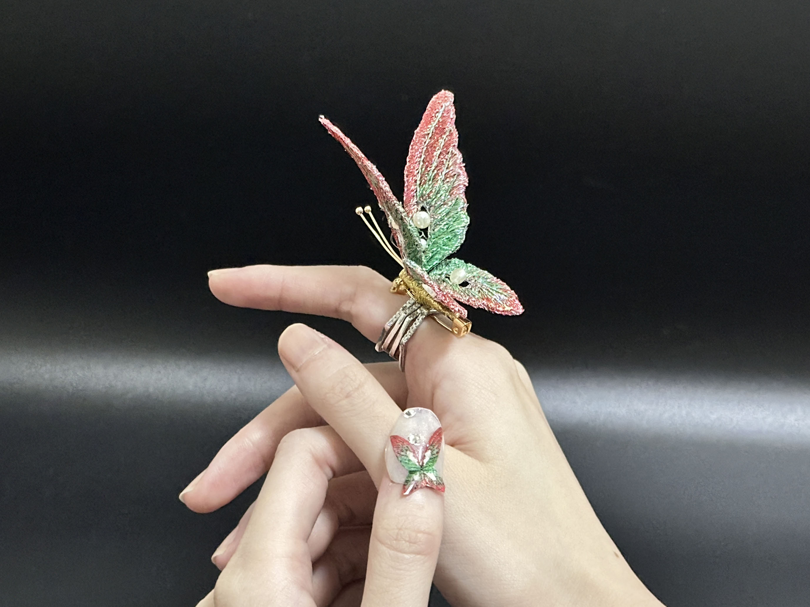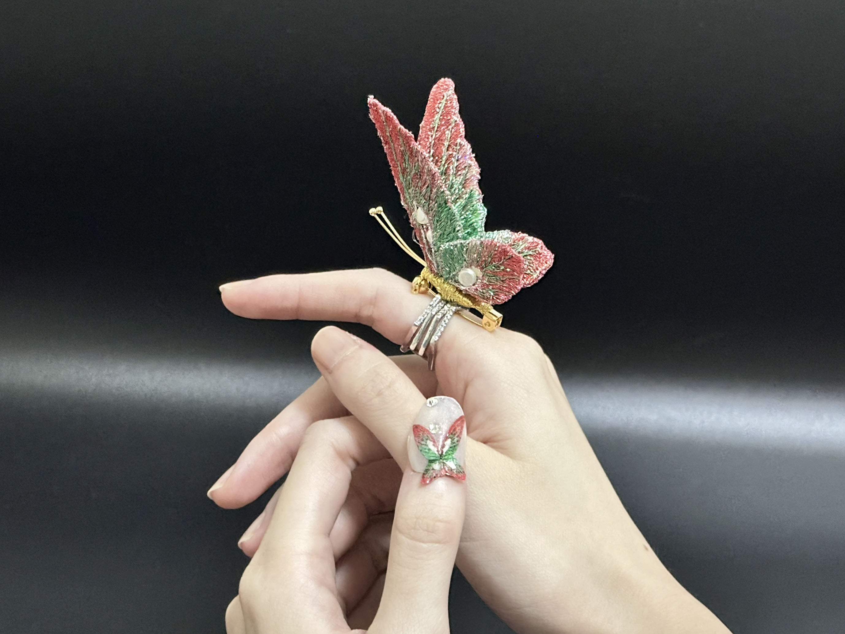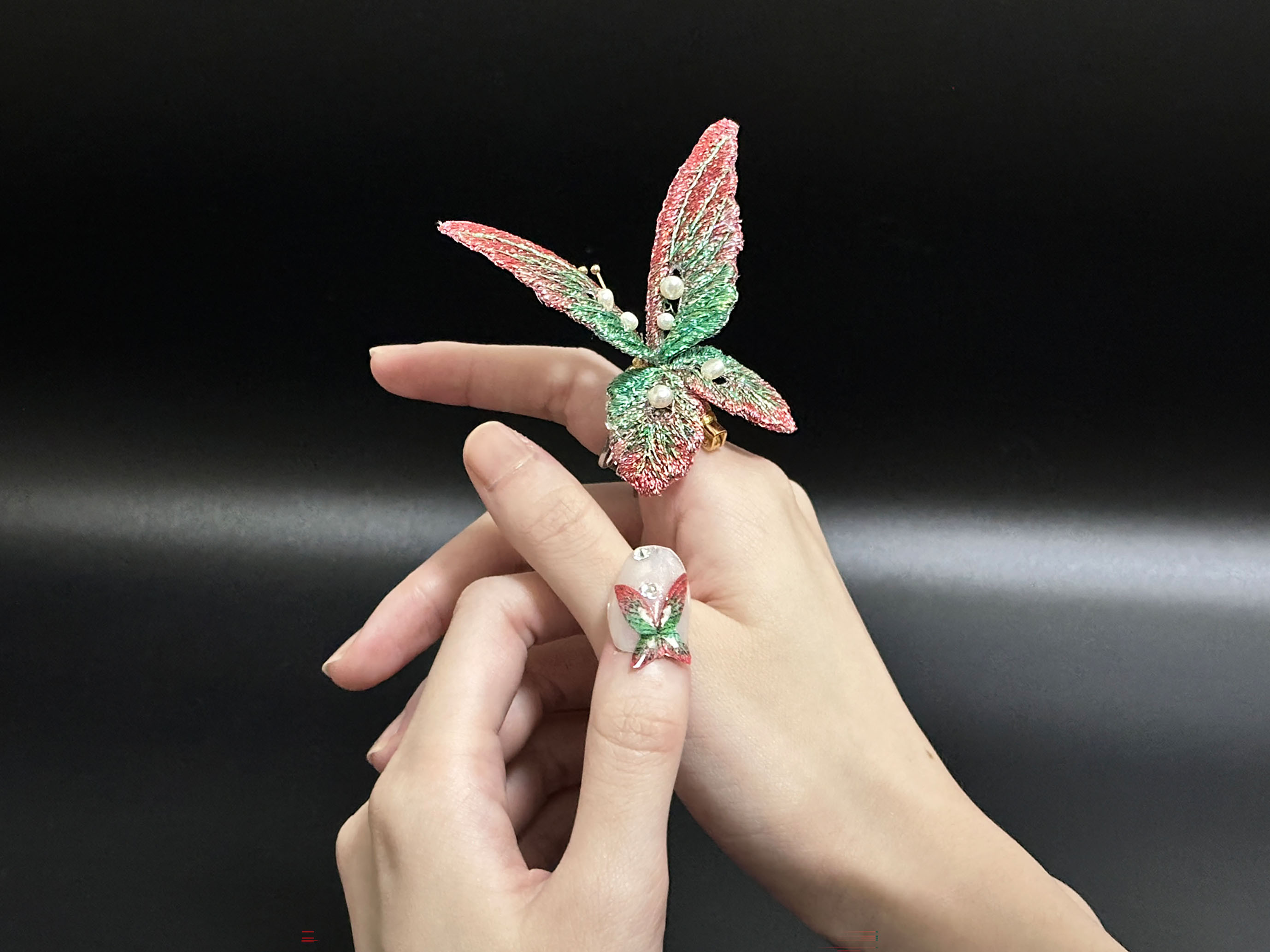 - 立体刺繍の蝶(レッドグリーン蝶)