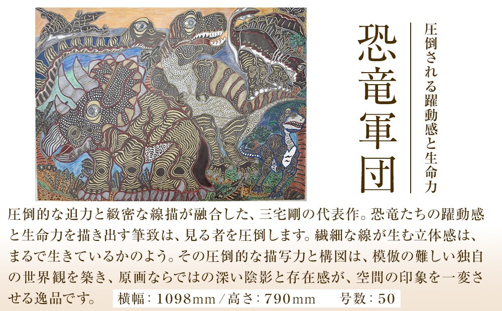 - 恐竜軍団|三宅剛 ペン画アート作品 【原画/ティラノサウルス・トリケラトプス】