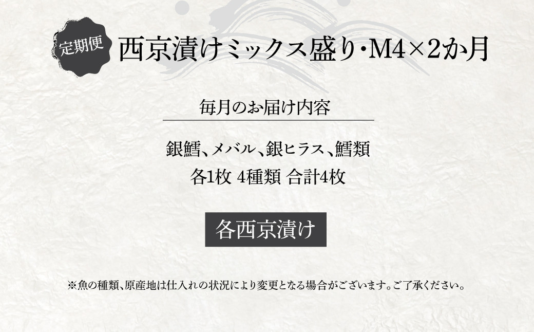 - 【定期便】西京漬けミックス盛り・M4×2か月