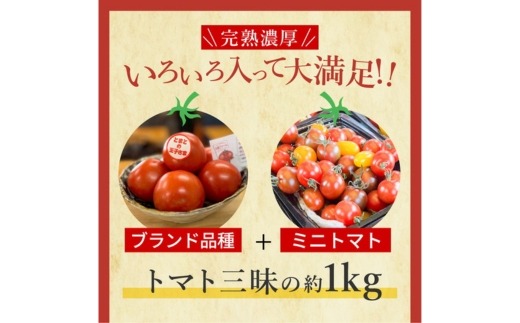 完熟トマト食べ比べセット約1kg 3種類のトマト 美味しさ選別 |とまと トマト 減農薬 野菜 やさい 人気 新鮮 産地直送 直売 甘い 高糖度 完熟 リコピン ビタミン ダイエット 美容 美肌 愛知県 美浜町 ※2026年1月上旬~5月下旬頃に順次発送