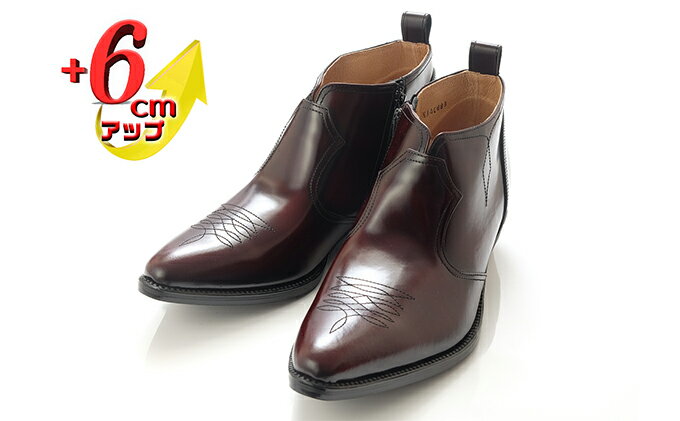 【ふるさと納税】ウエスタンブーツ メンズ サイドファスナー カウボーイ ショート 6cm シークレットブーツ 本革 No.888