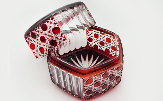 ヒロタグラスクラフト 江戸切子 紅 江戸切子 蓋物 八角篭目紋様[№5619-0875]