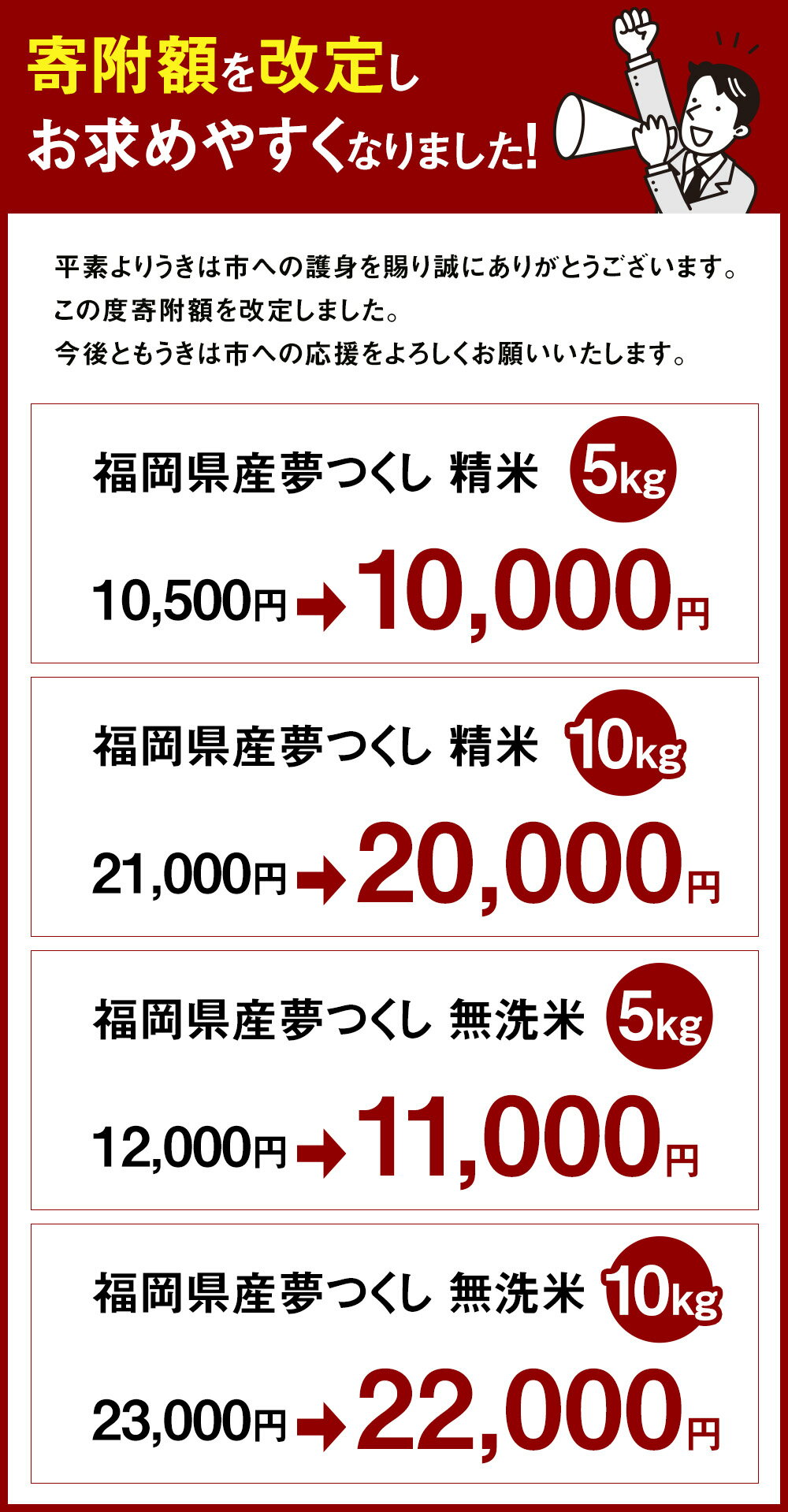 - 【ふるさと納税】 福岡県産 夢つくし 精米 / 無洗米 ( 5kg / 10kg ) <選べる 種類 / 容量> 《令和7年産》 米 お米 こめ コメ ごはん ご飯 白米 令和7年度米 単一原料米 ブランド米 福岡県 うきは市 常温 送料無料