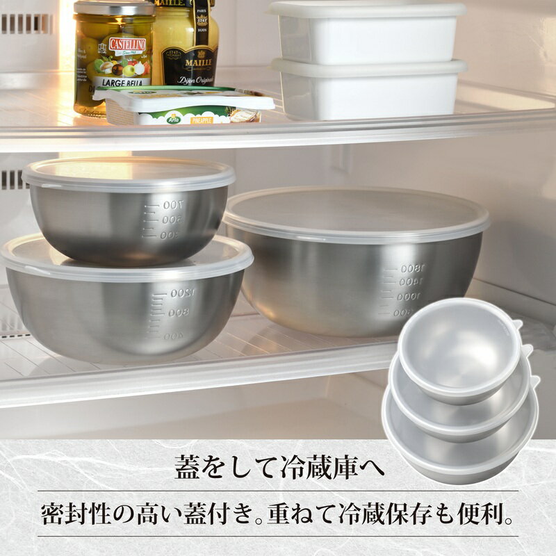 - 【ふるさと納税】EM-047 燕三 シリコーン蓋付ステンレスボウル3点セット【 ステンレス ボウル 燕三条 新潟県 燕市 】