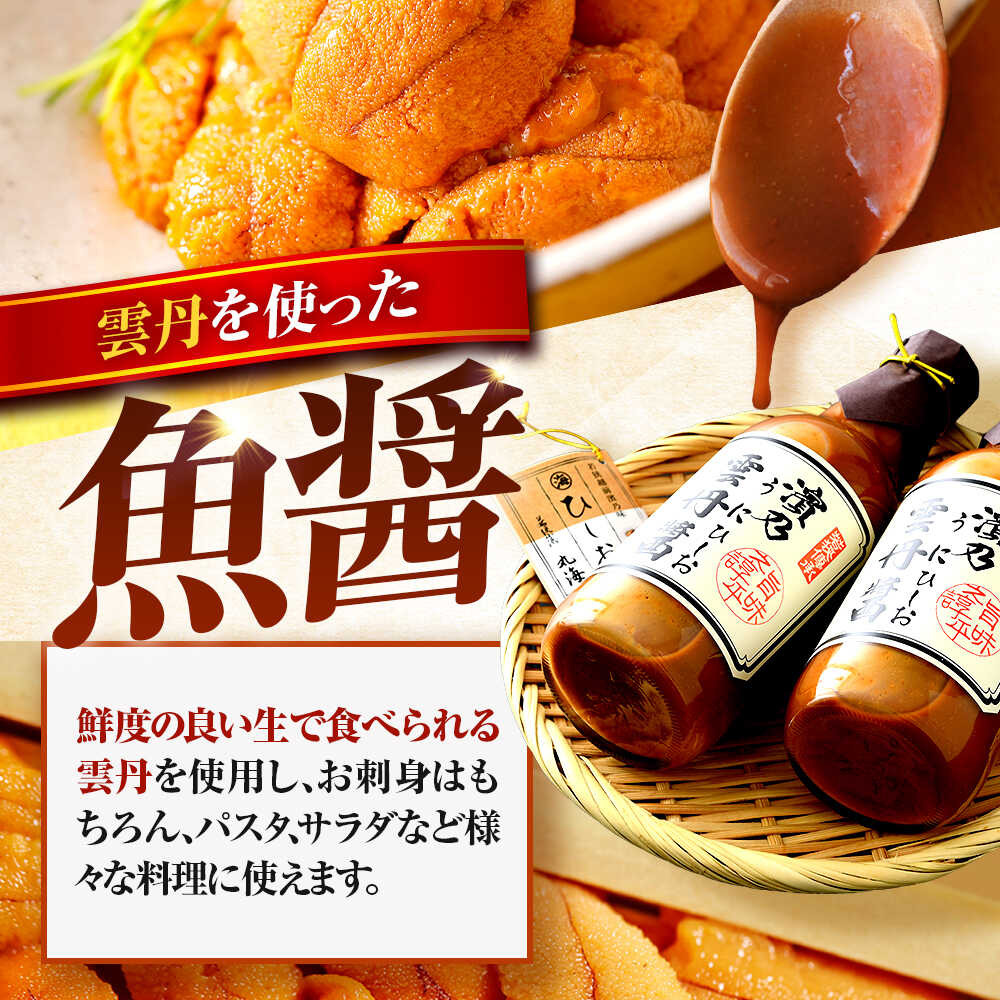 【ふるさと納税】雲丹ひしお 390g × 1本 | ヒルナンデス 魚醤 醤油 雲丹 うに ウニ ドレッシング サラダ 贈答 リピーター続出 ごはんのお供 濃厚 国産 調味料 刺身 パスタ 冷奴 焼き魚 お取り寄せ おかず おつまみ 送料無料 [A-001008] [BFAA064]