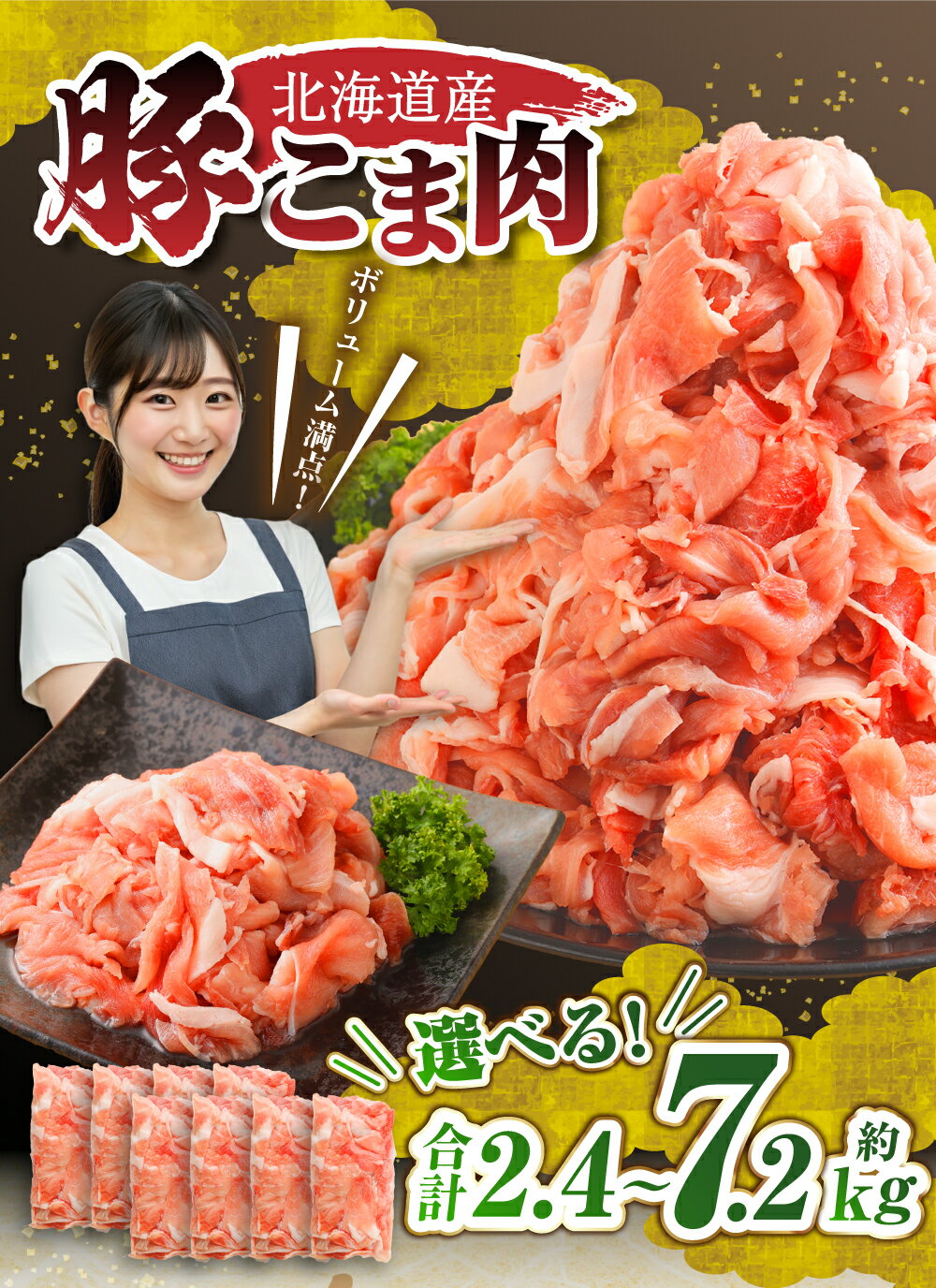 【ふるさと納税】<選べる内容量>肉屋のプロ厳選!北海道産 豚こま肉 2.4kg(300g×8袋)/ 4.2kg(300g×14袋) / 5.1kg(300g×17袋)/ 7.2kg(300g×24袋)1万2000円~2万7000円 12000円 ~ 27000円 【1~2か月以内に順次発送】 [007-0250x3]