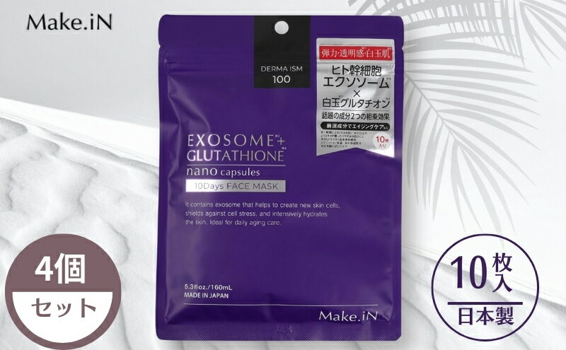 【ふるさと納税】Make.iN EXOSOME + GLUTATHIONE 10Days フェイスマスク エクソソーム ヒト幹細胞 白玉 グルタチオン セラミド CICA EGF FGF パック マスク 保湿 スキンケア×4個セット お届け:ご寄附(入金確認日)より約2週間でお届けいたします。