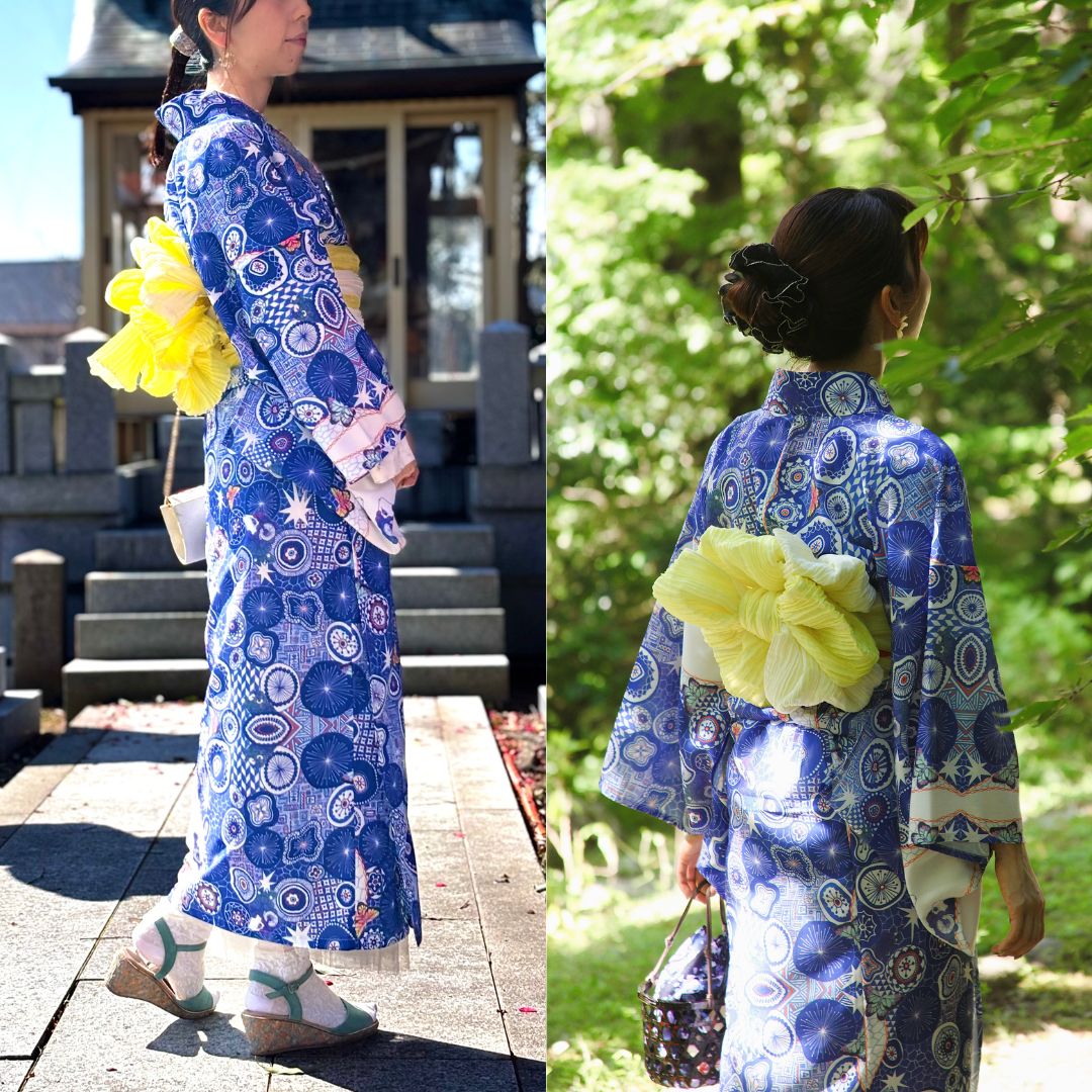 - 【ふるさと納税】[KUTANI×KIMONO] ユニセックス浴衣 帯 2点セット 夢見紋 (選べるサイズ S/F/L) 浴衣 服 ギフト 石川県 小松市 056008【デクシオーラ株式会社】