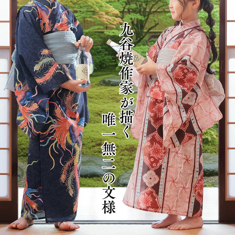 【ふるさと納税】[KUTANI×KIMONO] キッズ浴衣 帯 2点セット 遊泳花 (選べるサイズ:110-120cm/130-140cm) 浴衣 服 ギフト 石川県 小松市 032020【デクシオーラ株式会社】