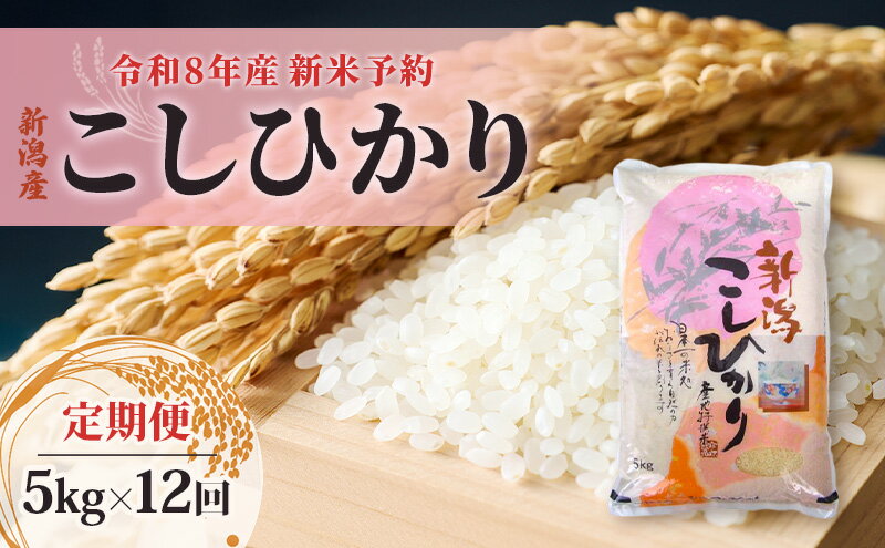 【ふるさと納税】【先行予約】令和8年産新米予約【定期便】新潟産コシヒカリ5kg×12回 米 精米 こしひかり お取り寄せ 新潟県 新潟市 お届け:2026年10月下旬~2027年8月下旬まで
