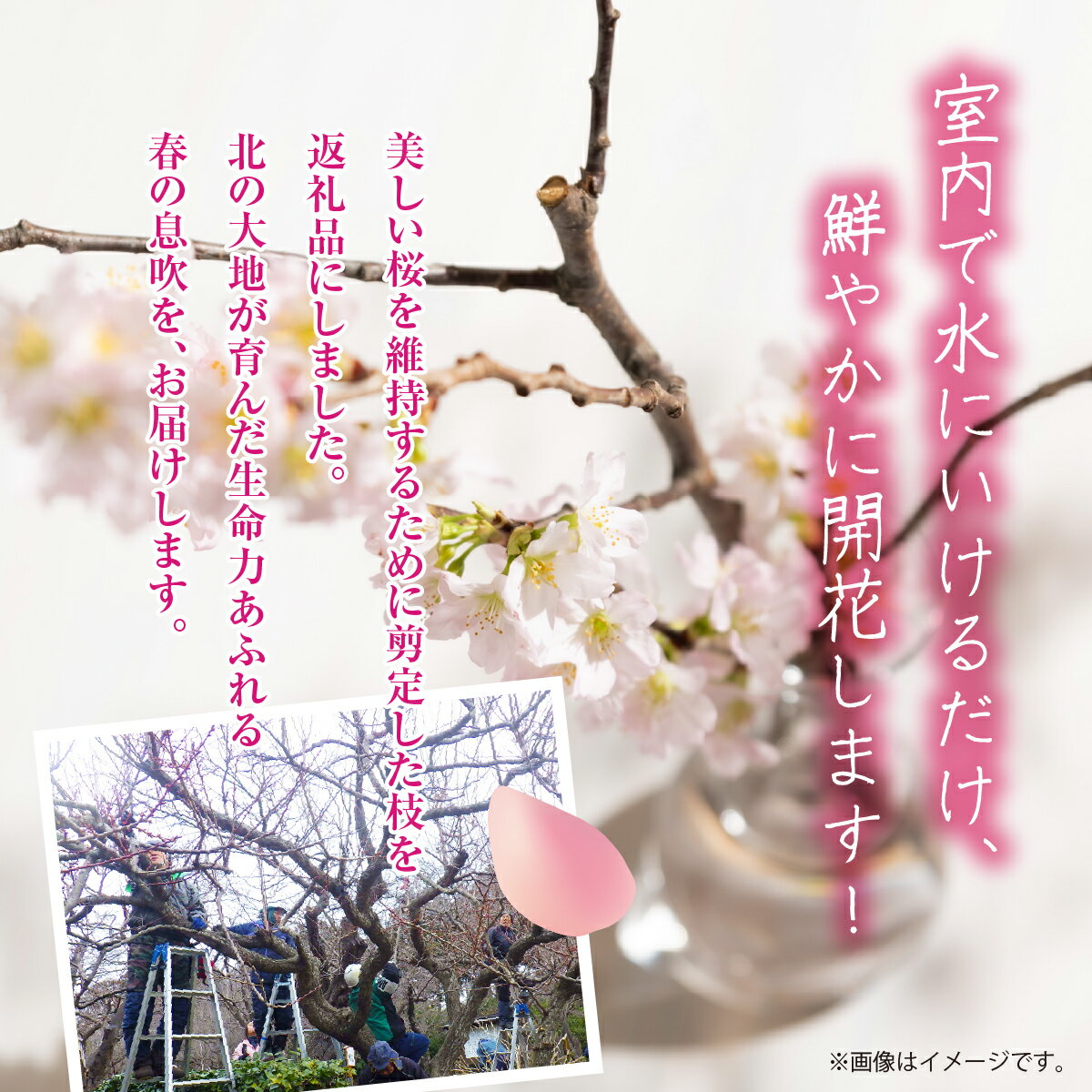 - 【ふるさと納税】”花守”が代々守り育てた桜の枝 約30cm 3本 八重桜 サクラ 枝 希少 珍しい 品種 国産 道産 松前産 桜の里 産地直送 南殿 糸括 関山 血脈桜 春 季節の 切り枝 枝もの 枝物 生花 活け花 花材 桜湯 インテリア 室内 お花見 北海道 松前町 送料無料 MATN003