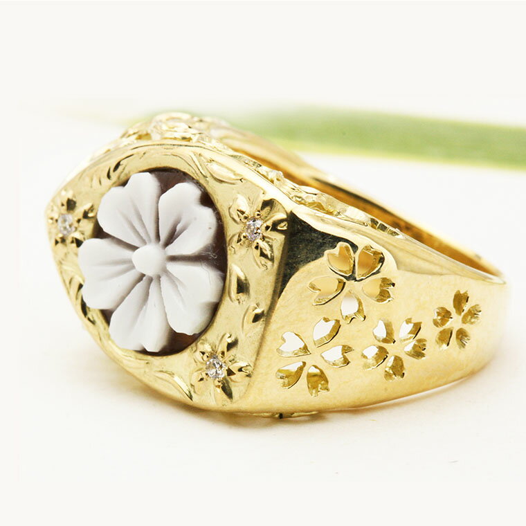 【ふるさと納税】万葉桜より「透桜(すかしさくら)」 リング K18 シェル カメオ 透かし彫 伝統工芸 金 指輪 ギフト 記念 贈答用 贈り物 リング アクセサリー ジュエリー ジュエリーマーノ 桜川市
