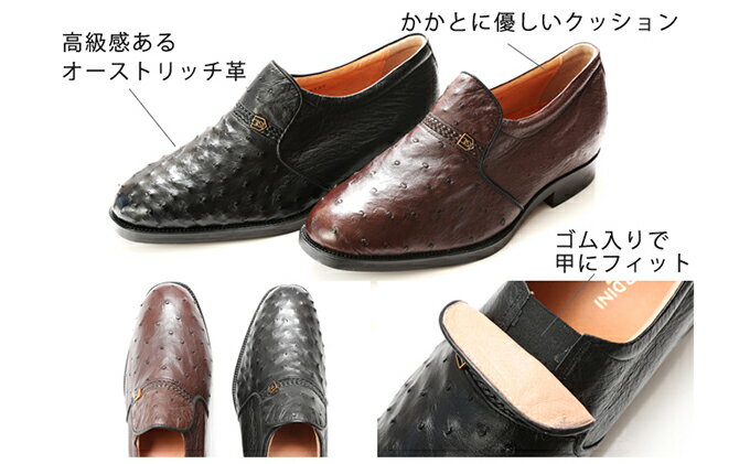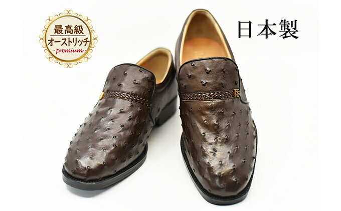 【ふるさと納税】オーストリッチ革 ビジネスシューズ 革靴 本革 紳士靴 プレーン 4E ワイド No.1265 ブラウン 【雑貨・日用品・ビジネスシューズ・本革・シューズ・靴】